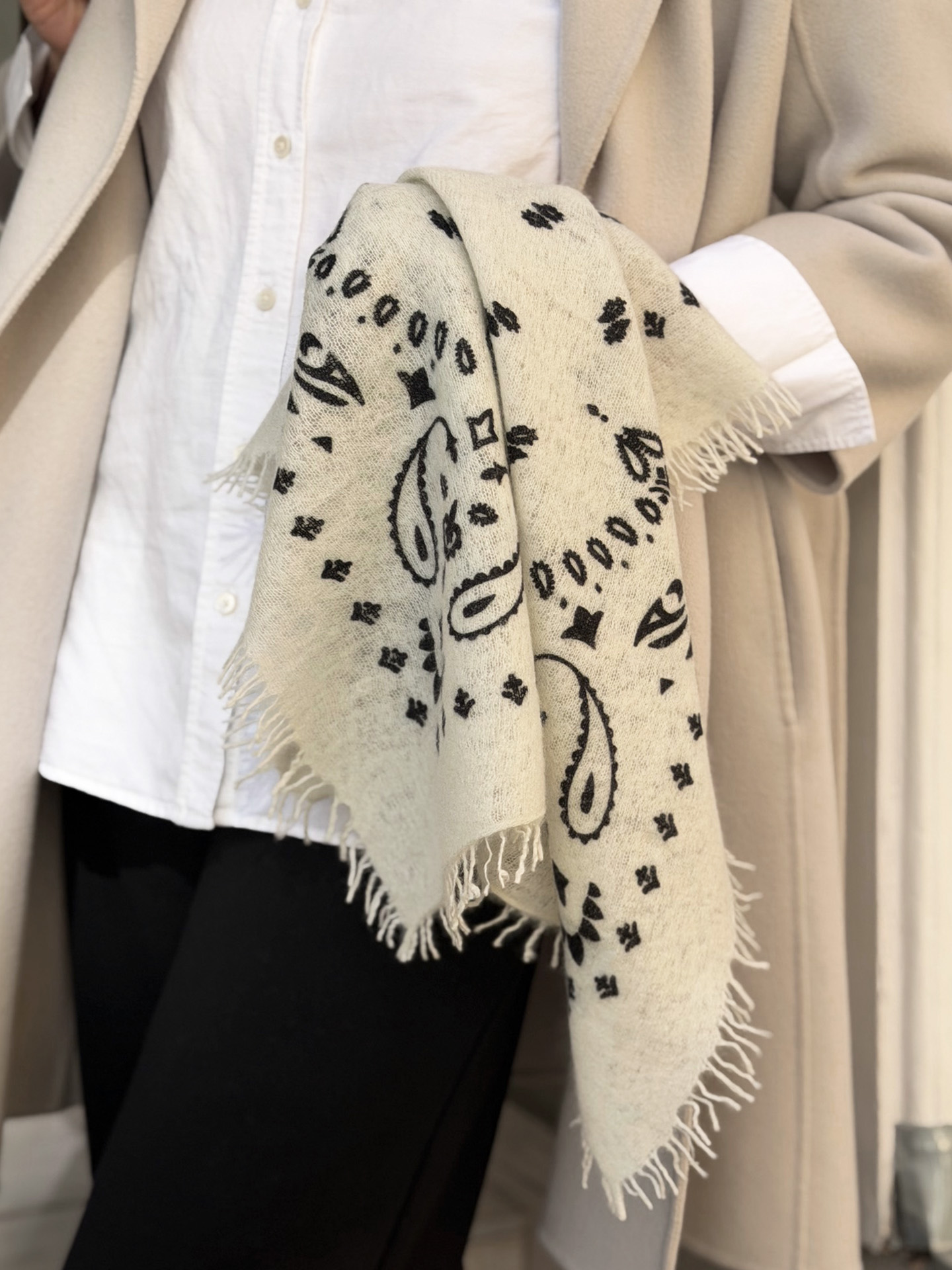 Mit seinem quadratischen Maß eignet es sich perfekt als Halstuch, leichtes Wärme-Accessoire oder stilvolles Detail für den Alltag.
