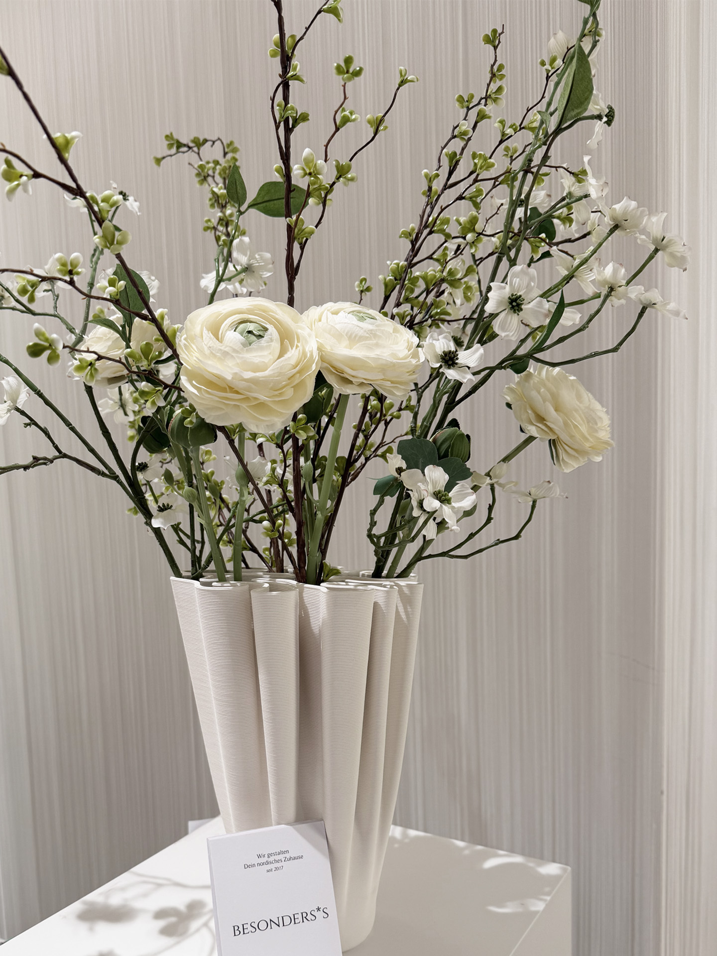 Wir kombinieren das Bouquet mit der besonderen DEDALI H-25 Vase. (nicht im Preis inkludiert)