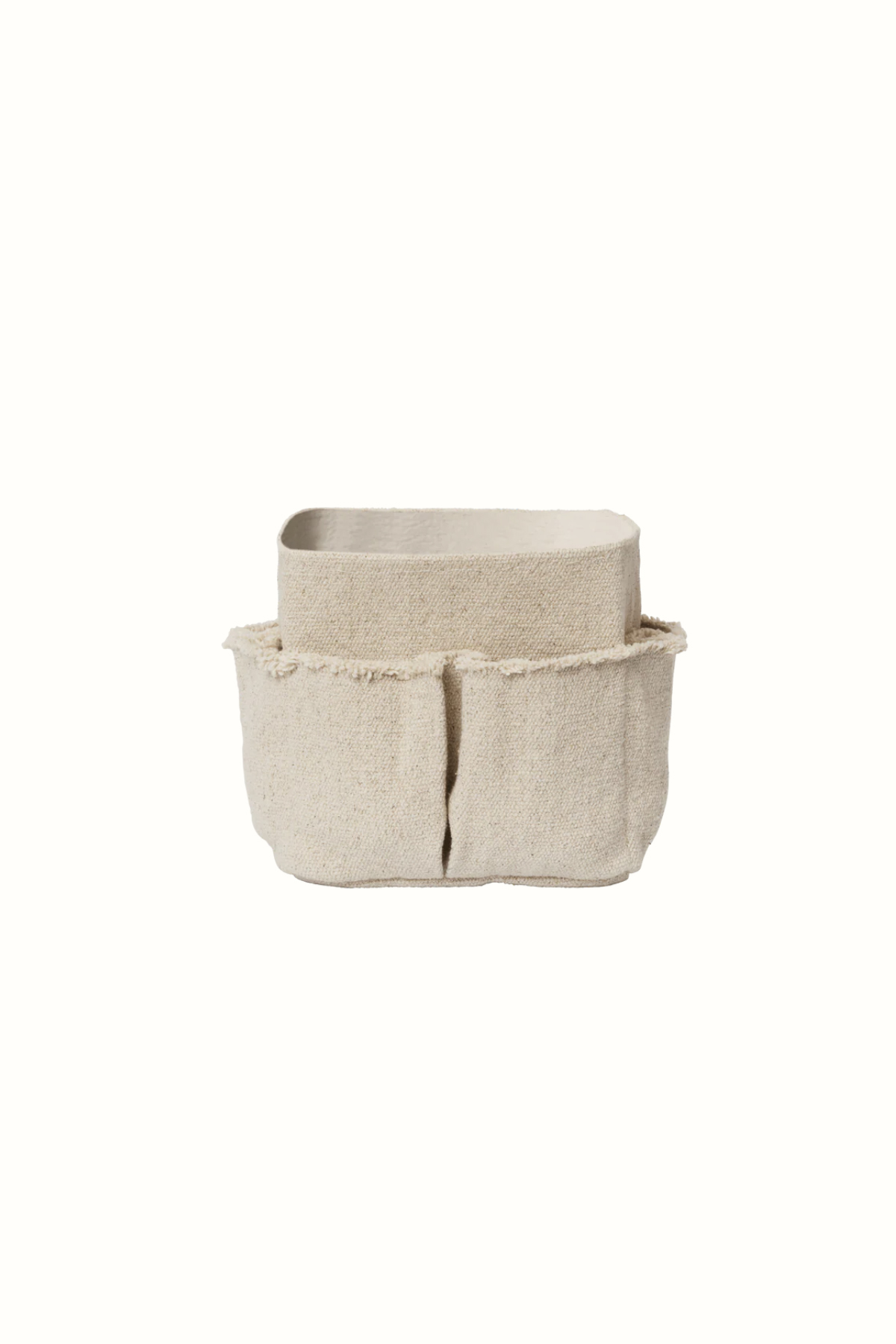 Die Hokan Textil-Aufbewahrung besteht aus schwerer, ungefärbter GOTS-zertifizierter Bio-Baumwolle mit einem Baumwollfutter.