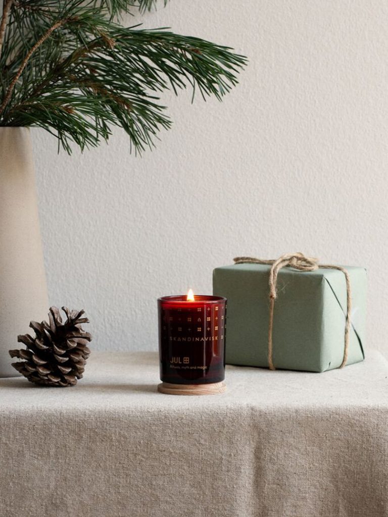 [‘jul] Skandinavisch für “Weihnachten”. Leuchtende Fenster in der Dunkelheit, Generationen versammelt in Harmonie und Tradition, weihnachtliche Leckereien verlockend am Kamin. Die Weihnacht steht in Bezug mit dem Duftspektrum dieser in allen Details besonderen Duftkerze von SKANDINAVISK.