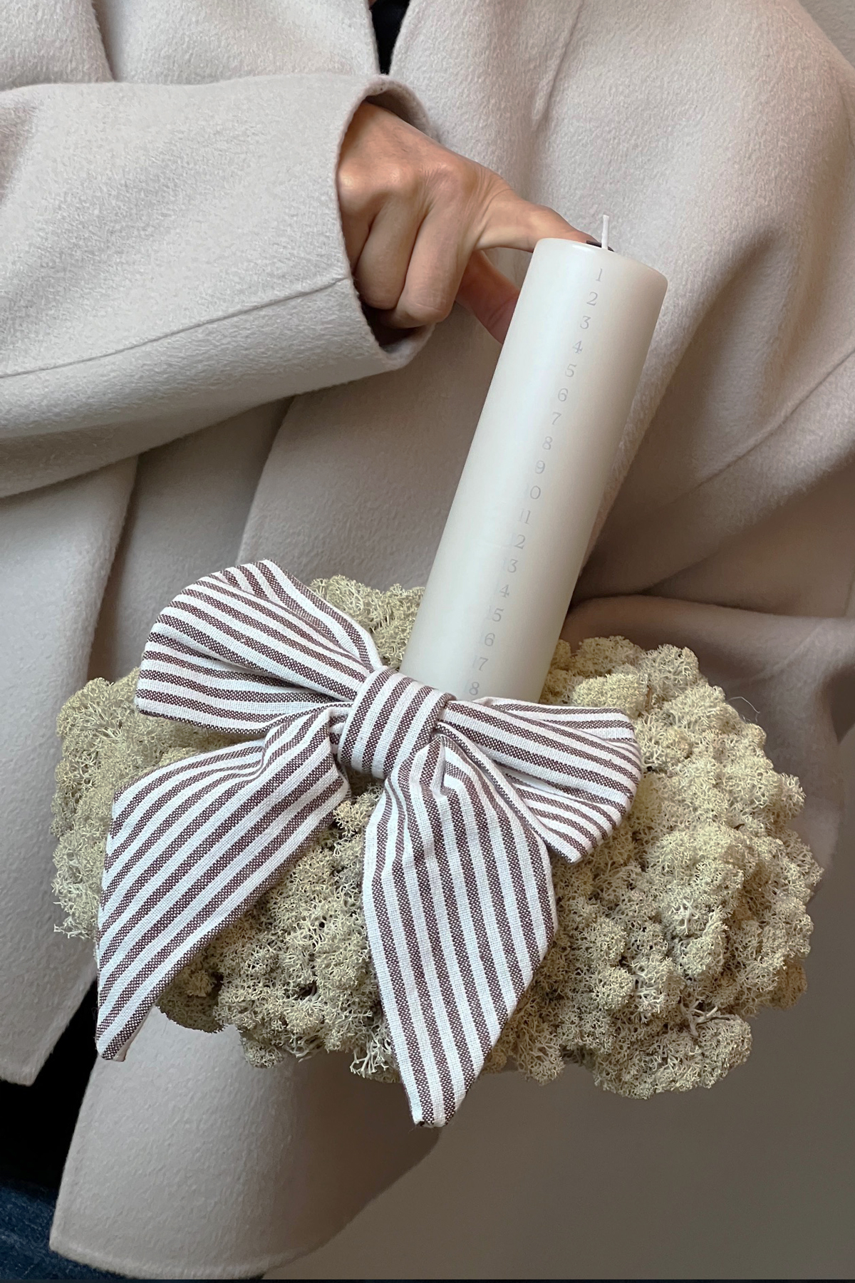 Die Farbe Ivory verleiht der Kerze eine moderne, zurückhaltende Eleganz – perfekt für jede Adventsdekoration.