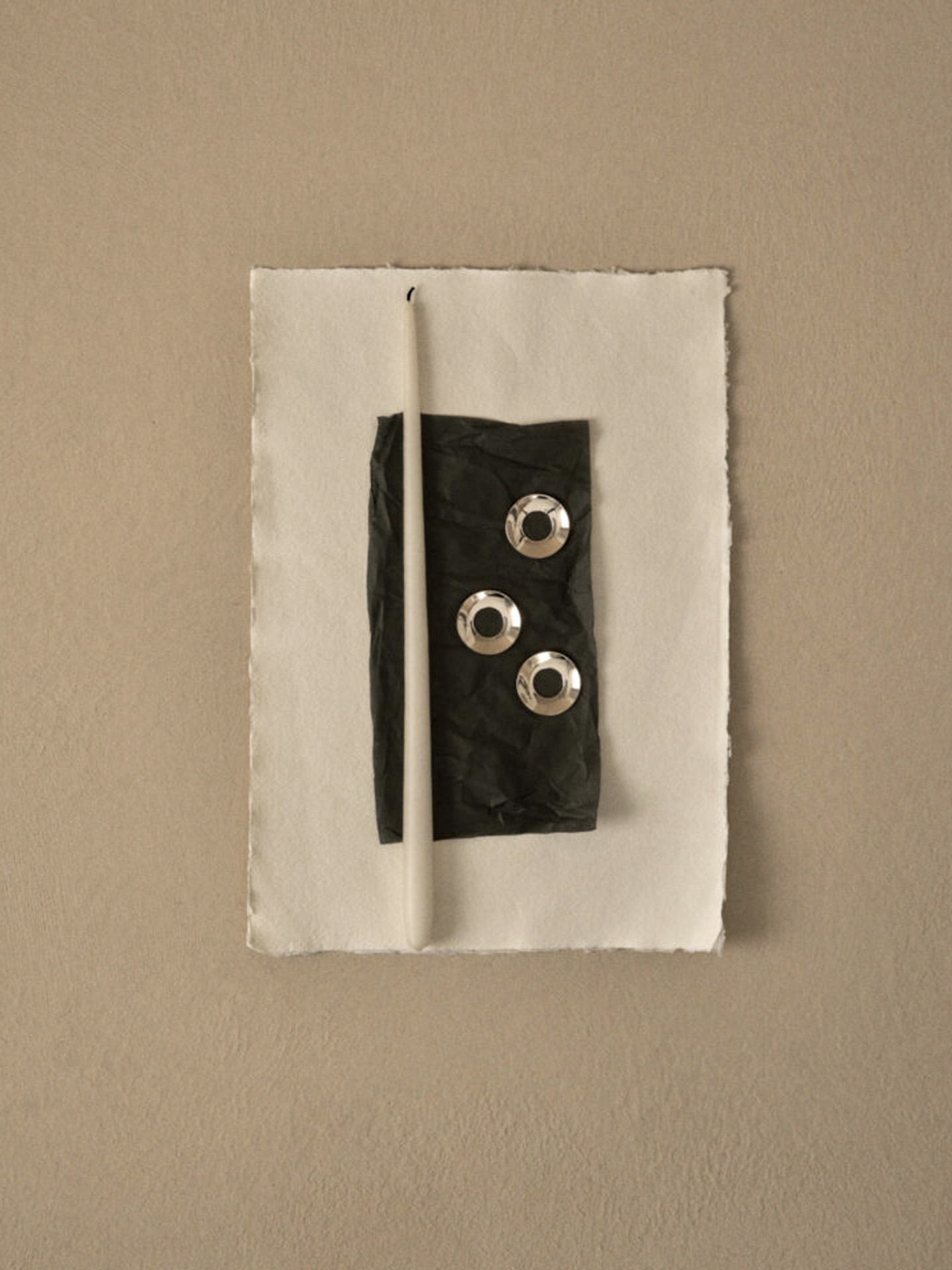 Die STOFF Nagel Manschette ist einfach in der Anwendung: Setze die Manschette einfach über die Öffnung, stelle die Kerze in die Manschette und in die Öffnung.