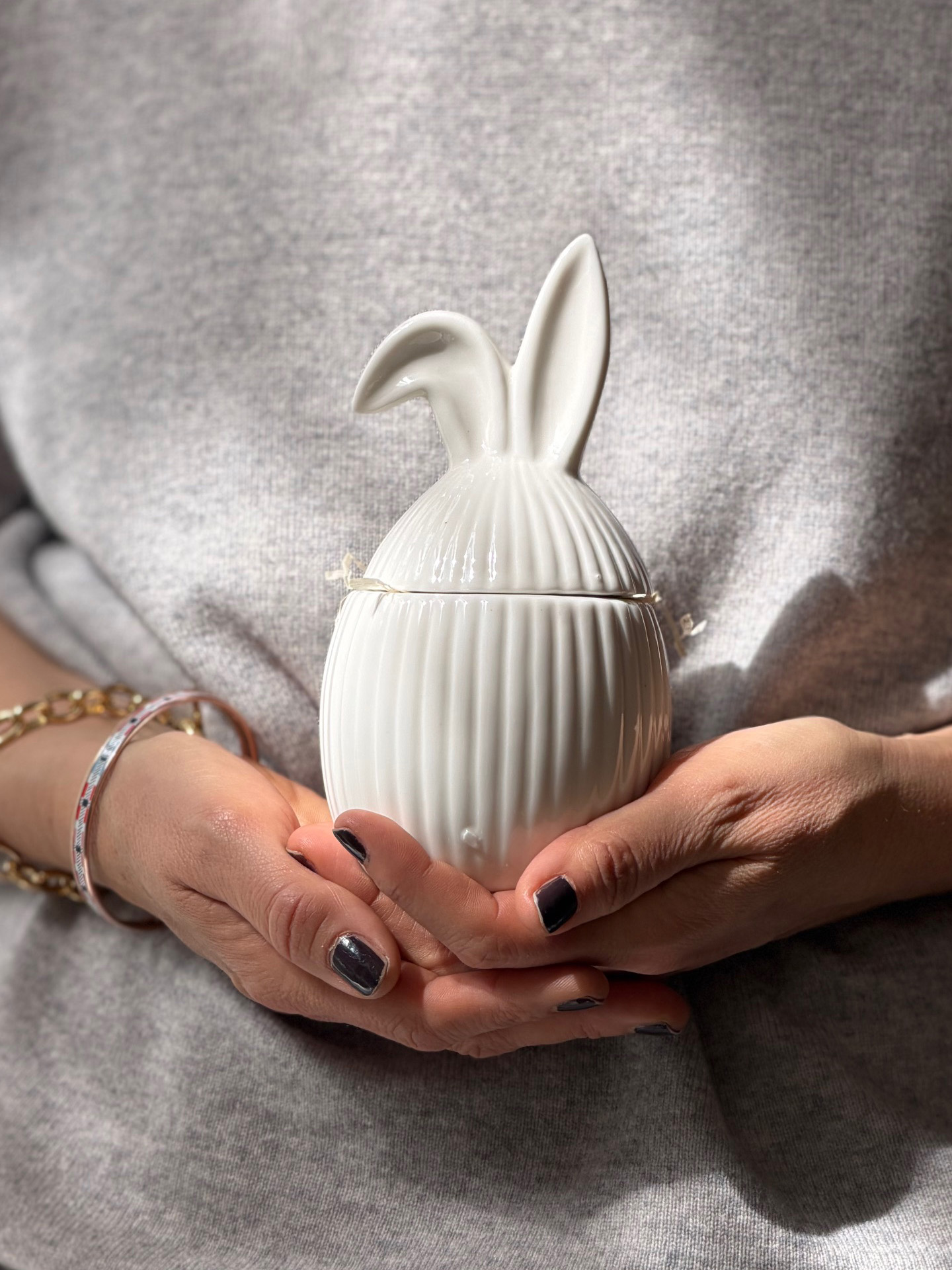 Ob gefüllt mit süßen Kleinigkeiten, kleinen Aufmerksamkeiten oder einfach als dekoratives Element – diese Keramikbonbonniere bringt eine leichte, frühlingshafte Stimmung in dein Zuhause.