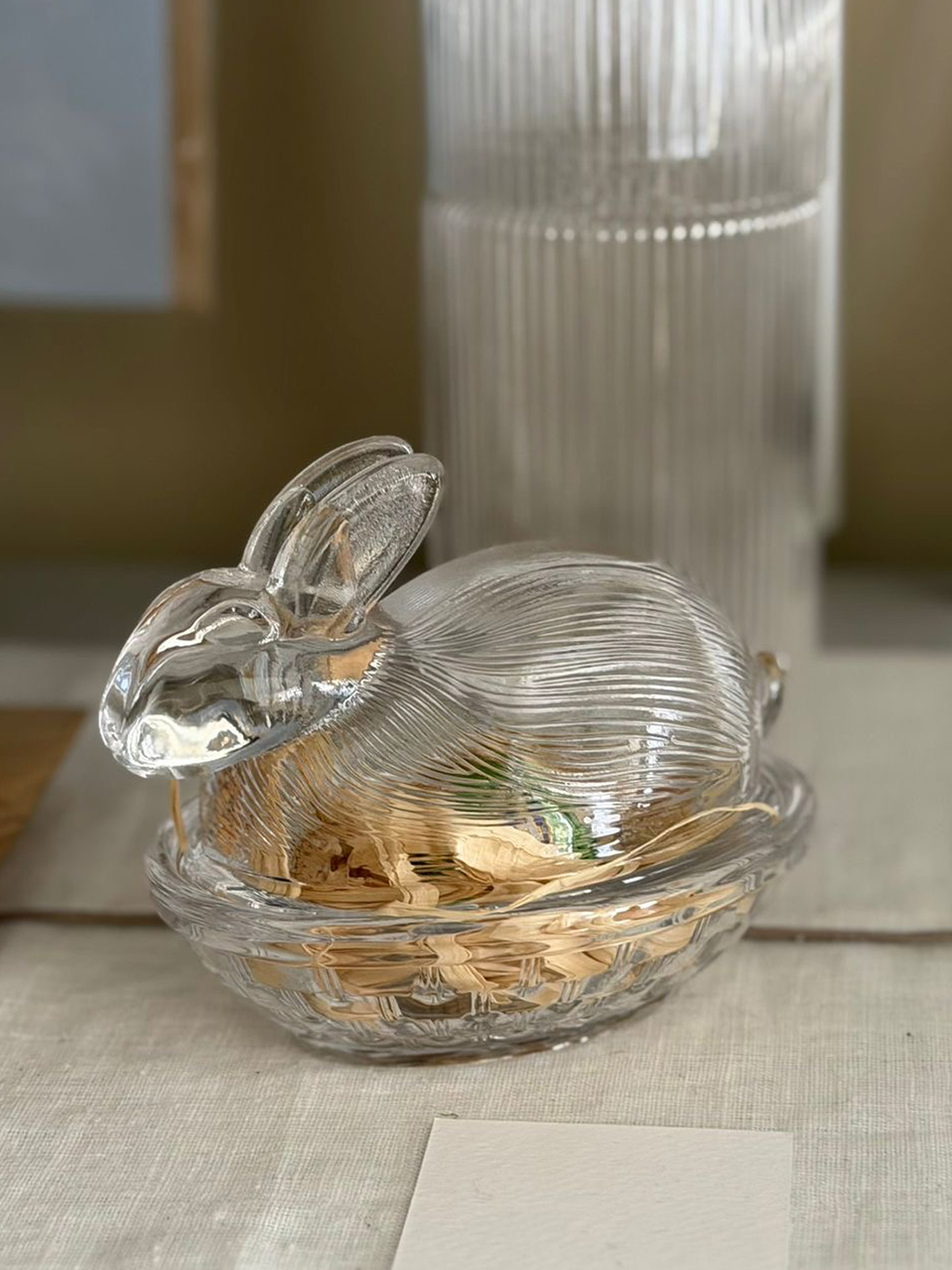 Ob gefüllt mit süßen Kleinigkeiten, kleinen Aufmerksamkeiten oder einfach als dekoratives Element – diese Glasbonbonniere bringt eine leichte, frühlingshafte Stimmung in dein Zuhause.