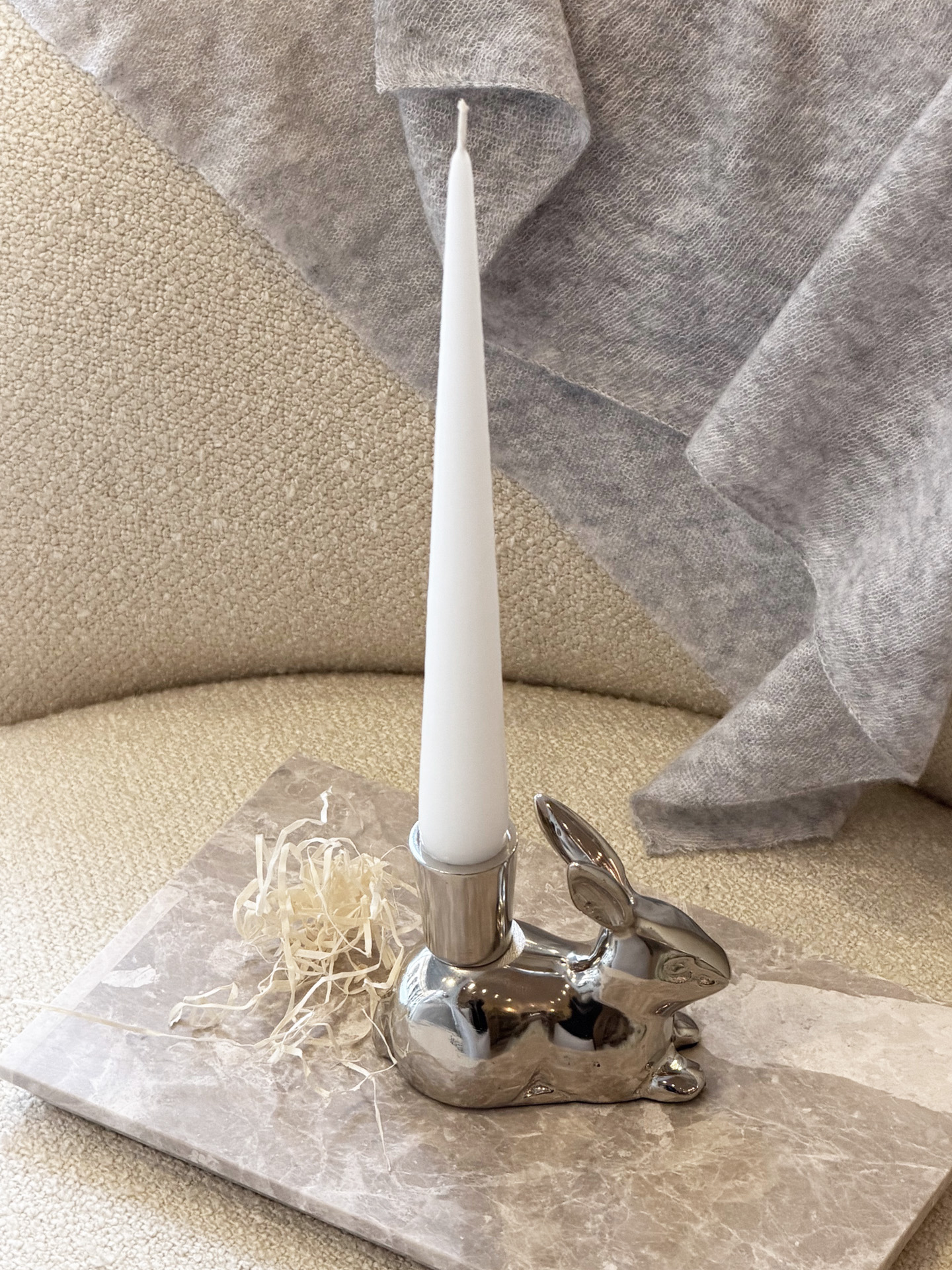 Der Nordic Bunny Kerzenhalter aus Silber verbindet verspielte Leichtigkeit mit zeitloser Eleganz.