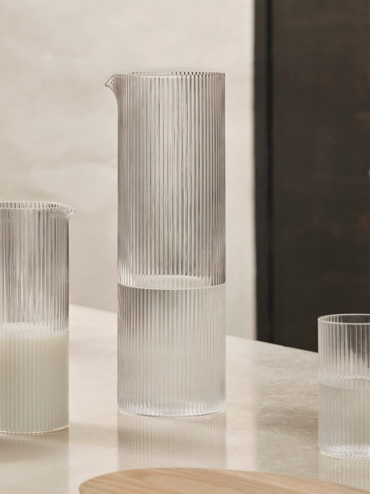 Der mundgeblasene Ripple Wasserkrug wird mit äußerster Präzision gefertigt und überzeugt durch die gleiche zeitlose Eleganz wie der Rest der beliebten Ripple-Familie. Der präzise Ausguss ermöglicht ein einfaches und kontrolliertes Ausgießen und ist damit unvergleichlich praktisch und vielseitig. Mit seinem großen Fassungsvermögen ist dieser Krug ein ideales Gefäß für Getränke aller Art und damit perfekt für jedes Beisammensein, jede Mahlzeit, aber auch besondere Anlässe geeignet.