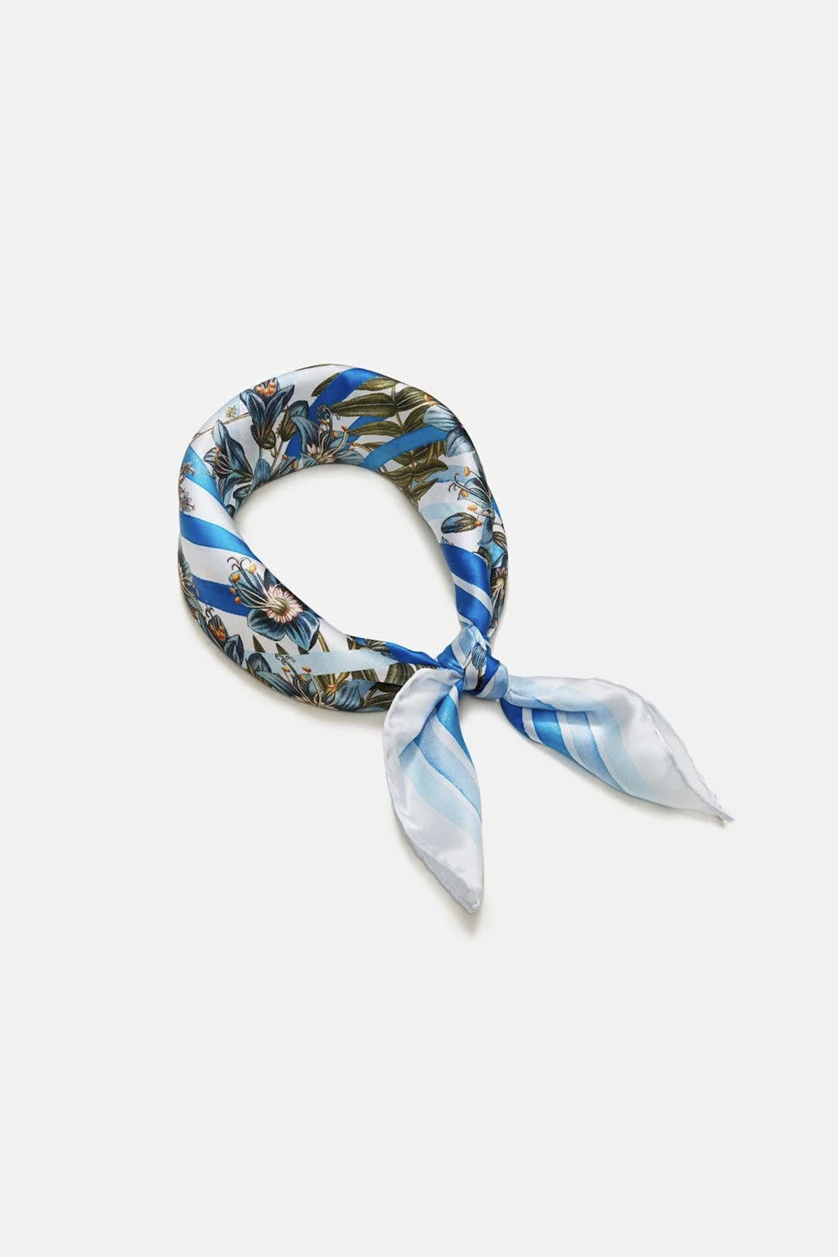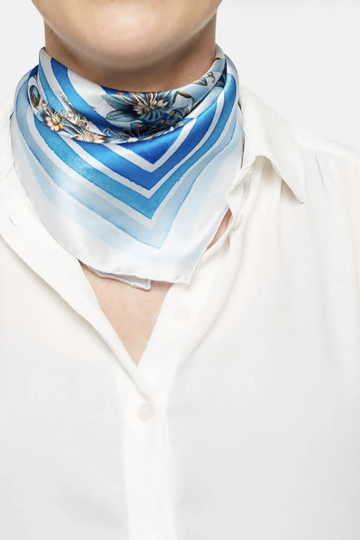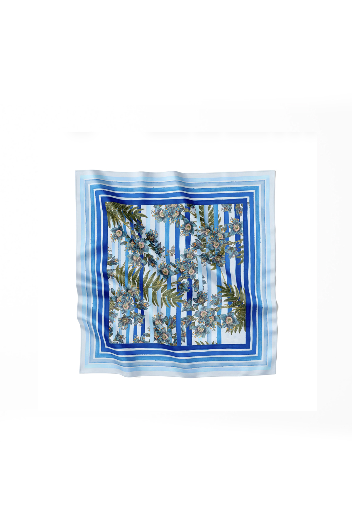 Ein eleganter Schal in den schönsten Hellblau- und Dunkelblautönen. Der Schal ist mit Flora Danicas floraler Illustration der Jakobsleiter-Blume verziert, während die blauen Streifen, die das Blumenmotiv umgeben, handbemalt sind, um dem Schal einen künstlerischen Ausdruck zu verleihen. Die Qualität des Schals besteht aus 100 % Seidensatin, was dafür sorgt, dass er nicht nur weich, atmungsaktiv und angenehm zu tragen ist, sondern auch eine Qualität hat, die viele Jahre halten kann. Mit seinen Maßen von 53×53 cm eignet sich der Schal sowohl um den Hals als auch als dekoratives Haarband oder auch als besonderes Detail auf deiner Tasche.