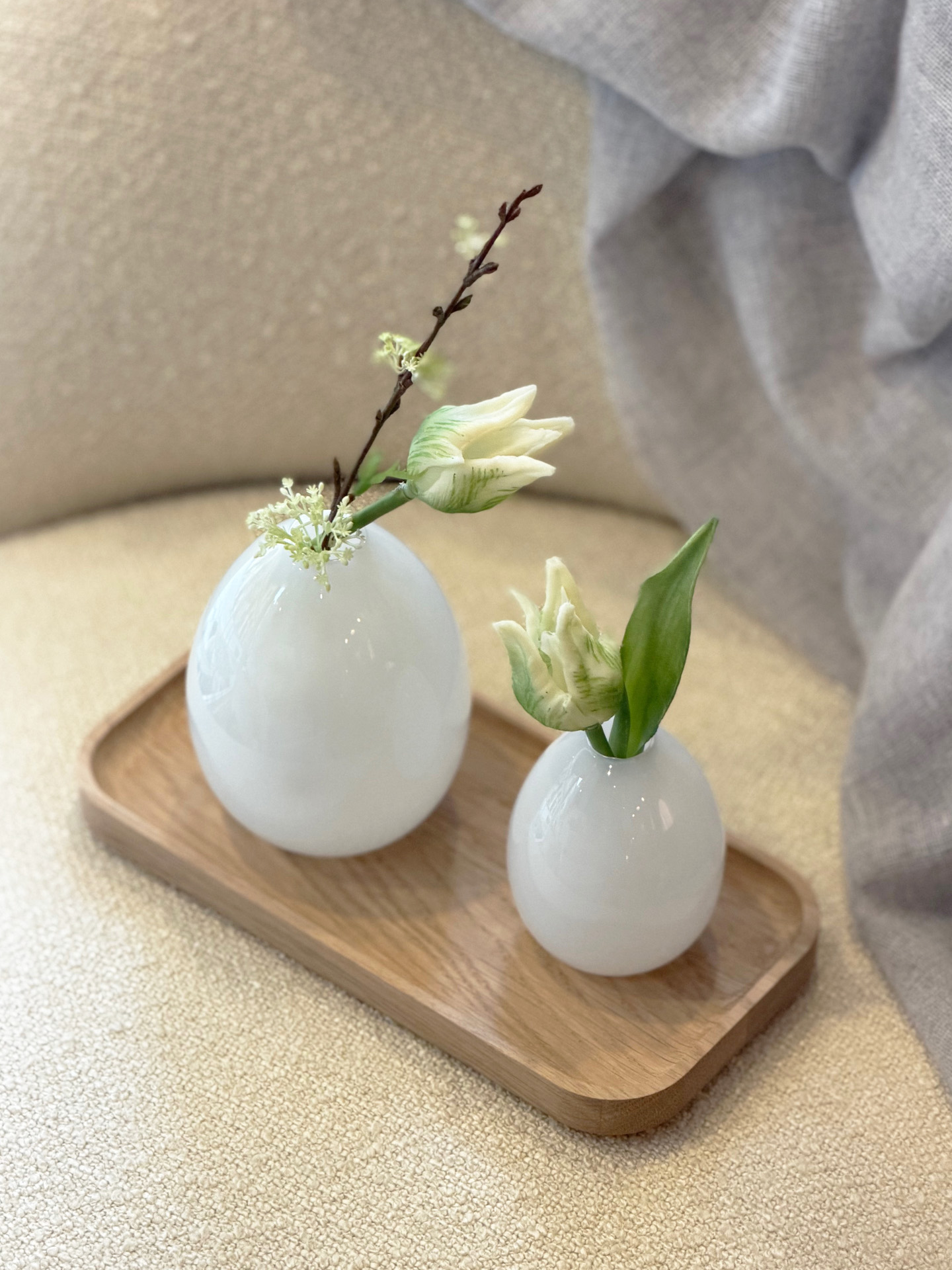 Zwei zarte Vasen, eine ruhige Geschichte. Das Vasen Duo besteht aus einer großen und einer kleinen stehenden Form – schlicht, zeitlos und nordisch klar.